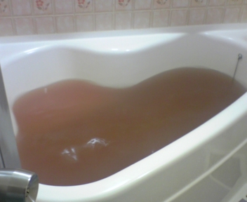 お風呂に白夜さんがチョコ風呂にする入浴剤を投入